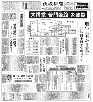 佼成新聞1966年9月9日号 大講堂“普門会館”を建設