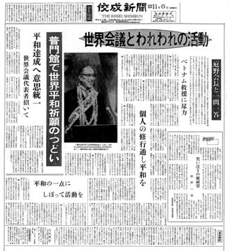 佼成新聞1970年11月6日号 普門館で世界平和祈願のつどい